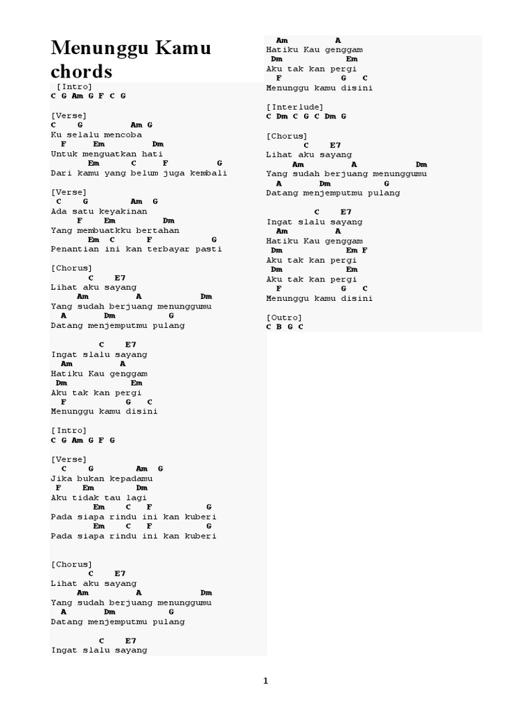 Jangan tunggu lama-lama tuk bisa ungkapkan semua yang ku tunggu adalah jawabanmu nona. A D G Bm Em Chords for A. Lagu ini menjadi bagian dari album milik Iwan Fals berjudul Mata Dewa.